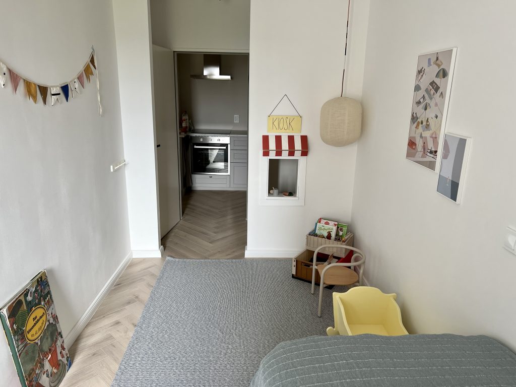 Im Kinderzimmer befindet sich ein Stapelbett mit Platz für 2 Kinder oder Erwachsene (80x200cm). Außerdem liegen im offenen Schrank ein Kinderreisebett mit Matratze (60 x 120 cm) , ein Rausfallschutz und ein Kinderhochstuhl für die kleinen Gäste bereit. Außerdem haben wir versucht mit ein paar Spielsachen, Büchern, einem Kiosk und einer kleinen Kindertür besondere Spielmöglichkeiten zu schaffen, die euch einen erholsamen Aufenthalt verschaffen sollen. Ein Aufenthalt mit glücklichen Kindern, die ihrer Fantasie freien Lauf lassen können und Eltern, die im besten Fall auch ihre Zeit zum Entspannen, Kochen, Buch lesen und Erholen bekommen.